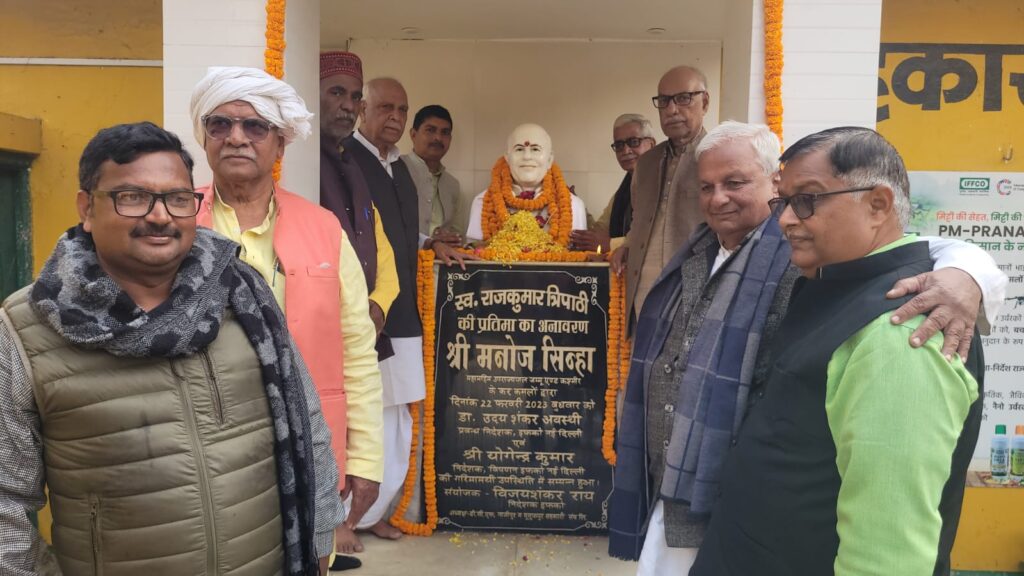मुहम्मदाबाद (गाजीपुर)। सहकारिता रत्न से विभूषित इफको के पूर्व निदेशक स्व० राजकुमार त्रिपाठी की छठवीं पुण्यतिथि पर रविवार को उनके निवास पर हवन पूजन के बाद युसुफपुर सहकारी संघ में श्रद्धांजलि सभा में सहकारी नेताओं व सहकारी कर्मचारियों अधिकारियों ने उनकी प्रतिमा पर पुष्पार्चन कर अपनी श्रद्धांजलि अर्पित किया। इफको निदेशक विजय शंकर राय ने उनके साथ अपनी आत्मीयता, मित्रता और लगभग छ दशक तक साथ रहने के दौरान बिताये गये अनुभवो को साझा किया और कहा कि स्वo त्रिपाठी जी बहुमुखी प्रतिभा के धनी थे राष्ट्रीय स्तर पर सहकारी नेताओं में उनकी एक पहचान थी। पूर्व विधायक जिला सहकारी संघ के अध्यक्ष विरेन्द्र सिंह ने कहा कि स्वoराजकुमार त्रिपाठी ने शिक्षा, पत्रकारिता एवं सहकारिता के क्षेत्र मे उच्च माप दण्ड स्थापित किया।