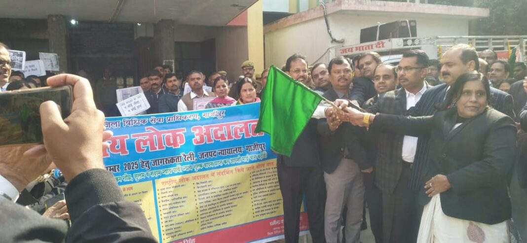 गाजीपुर। राज्य विधिक सेवा प्राधिकरण लखनऊ निर्देश पर राष्ट्रीय लोक अदालत का आयोजन 13 दिसंबर को जनपद न्यायालय, वाह्य न्यायालय सैदपुर एवं मुहम्मदाबाद तथा ग्राम न्यायालय जखनियाँ व जमानियाँ के साथ-साथ अन्य सरकारी प्रतिष्ठानों में किया जाएगा। जिसमें पूर्व की भांति राष्ट्रीय विधिक सेवा प्राधिकरण द्वारा निर्देशित प्रकरण यथा उत्तराधिकार प्रमाण पत्र संबंधी, छोटे व लघु दाण्डिक वाद, पारिवारिक वाद, धारा-138 एन.आई.एक्ट, स्टाम्प वाद/पंजीयन वाद, मोटर अधिनियम वाद, चकबंदी वाद, श्रम वाद, उपभोक्ता फोरम वाद, वाट-माप प्रचलन अधिनियम वाद, कराधान प्रकरण, बिजली चोरी के वाद, सुलह समझौता एवं मध्यस्थता के माध्यम से वैवाहिक विवाद को परिपक्व कराकर राष्ट्रीय लोक अदालत में पूर्व की तुलना में ज्यादा से ज्यादा वादों का निस्तारण कर, आमजन को लाभान्वित करते हुए, राष्ट्रीय लोक अदालत का आयोजन किया जाना है। जिला विधिक सेवा प्राधिकरण के अध्यक्ष व जिला जज धमेन्द्र कुमार पाण्डेय ने 10 दिसंबर को जनपद न्यायालय से हरी झंडी दिखाकर जागरूकता रैली को रवाना किया । इस मौके पर जिला जज ने आम जनमानस से राष्ट्रीय लोक अदालत में बढ़-चढ़ कर हिस्सा लेने के लिए आह्वाहन किया एवं विश्व मानवाधिकार दिवस के अवसर पर सभी को जागरूक करते हुए अपने अधिकारों के प्रति सजग रहने व अपने दायित्वों का पालन करने के लिए कहा। इस अवसर पर संजय हरी शुक्ला, पीठासीन अधिकारी मोटर दुर्घटना दावा अधिकरण, अली रजा, अपर जिला एवं सत्र न्यायाधीश कक्ष सं0-03, शक्ति सिंह अपर जिला एवं सत्र न्यायाधीश कक्ष सं0-01/नोडल अधिकारी लोक अदालत, अभिमन्यू सिंह, स्पेशल जज एससी/एसटी पीए एक्ट गाजीपुर, राम अवतार प्रसाद, स्पेशल जज पाक्सो कक्ष सं0-1, एवं विजय कुमार-IV] अपर जिला एवं सत्र न्यायाधीश/सचिव पूर्णकालिक, जिला विधिक सेवा प्राधिकरण एवं अन्य न्यायिक अधिकारीगण तथा कर्मचारीगण उपस्थित रहें।