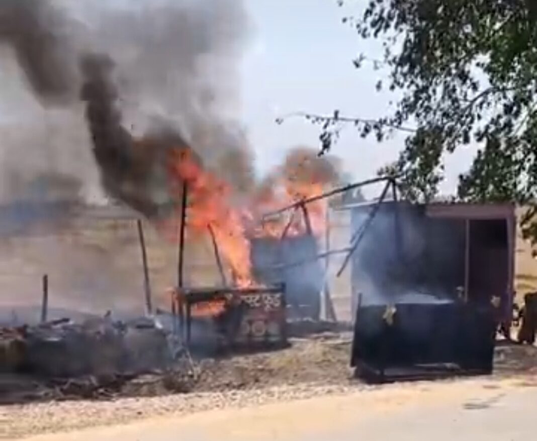 मरदह (गाजीपुर)। थाना क्षेत्र के डोड़सर-कोदई चट्टी पर बुधवार दोपहर अज्ञात कारणों से आग लग गई।इस अग्निकांड में चार दुकानें पूरी तरह जलकर राख हो गईं।जिससे लाखों रुपये का सामान जल गया है।घटना से क्षेत्र में घंटों तक हड़कंप मचा रहा। चिलचिलाती धूप और गर्म हवाओं के बीच लगी यह आग इतनी तेजी से फैली कि दुकानदार कुछ समझ नहीं पाएं भागकर किसी तरह जान बचाये। देखते ही देखते आग की लपटे दुकानों को अपनी चपेट में ले लिया।डोडसर निवासी अनीश गोंड के फास्टफूड की दुकान में पहले आग लगी। पीड़ित के अनुसार,कच्चा माल और अन्य सामान लगभग 50 हजार रुपये का नुकसान हुआ है,जिसमें अंडा, ब्रेड और चाउमीन जैसे खाद्य पदार्थ शामिल थे।डोड़सर गांव निवासी पवन गुप्ता की चाय-नाश्ते की मड़ई भी आग की भेंट चढ़ गई।कोदई गांव निवासी भीम राम की मड़ई भी इस अग्निकांड में जलकर नष्ट हो गई।कोदई गांव निवासी मंगरू सिंह की पान, तंबाकू और जनरल स्टोर की दुकान में रखा कीमती सामान भी आग की चपेट में आ गया।स्थानीय ग्रामीणों और राहगीरों ने कड़ी मशक्कत के बाद आग आग पर काबू पाया,लेकिन तब तक दुकानों में रखा सब कुछ जल चुका था। सूचना मिलने पर पुलिस मौके पर पहुंची और स्थिति का जायजा लिया।क्षेत्रीय लेखपाल बबली यादव ने बताया कि क्षति आकलन करते हुए रिपोर्ट तहसील मुख्यालय को भेजा गया है। ग्राम प्रधान महेन्द्र राम ने बताया कि चारों दुकानदारों को मिलाकर दो लाख रुपए का नुक़सान हुआ है।
