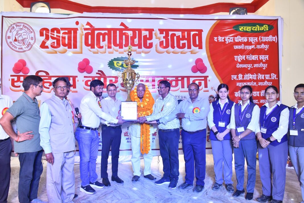 गाजीपुर। वेलफेयर क्लब की ओर से लंका मैदान में आयोजित 29वां वेलफेयर उत्सव एवं साहित्य गौरव सम्मान समारोह हुआ। कार्यक्रम का शुभारंभ मुख्य अतिथि सरकारी अफीम एवं क्षारोद कारखाना के महाप्रबंधक दौलत कुमारतथा विशिष्ट अतिथि मां कंवलपती हॉस्पिटल डॉ. स्वतंत्र सिंह ने दीप प्रज्वलित कर किया । दौलत कुमार ने कहा कि जिले में पहली बार किसी साहित्यकार को इस प्रकार सम्मानित किया जाना अत्यंत सराहनीय पहल है। उन्होंने कहा कि साहित्य समाज का दर्पण होता है और साहित्यकार समाज को दिशा देने का कार्य करते हैं। डॉ. मांधाता राय जैसे विद्वान को सम्मानित कर वेलफेयर क्लब ने न केवल उनका गौरव बढ़ाया है, बल्कि साहित्यिक परिवेश को नई ऊर्जा प्रदान की है। इसके उपरांत वरिष्ठ साहित्यकार एवं स्वामी सहजानंद पीजी कालेज के पूर्व प्राचार्य डॉ. मांधाता राय को “साहित्य गौरव सम्मान” से नवाजा गया। उल्लेखनीय है कि जिले में पहली बार किसी साहित्यकार को इस प्रकार के विशेष सम्मान से सम्मानित किया गया, जिससे साहित्य जगत में खासा उत्साह देखा गया।इसके अतिरिक्त समाज सेवा के क्षेत्र में बाबू लाल मानव को “समाज सेवा सम्मान”, पर्यावरण संरक्षण के लिए लव तिवारी को “पर्यावरण संरक्षण सम्मान” तथा शिक्षा क्षेत्र में उत्कृष्ट कार्य के लिए श्रीप्रकाश सिंह को “उत्कृष्ट शिक्षक सम्मान” प्रदान किया गया। वहीं जवाहर नवोदय विद्यालय की छात्रा वैष्णवी सिंह को सीबीएसई हाईस्कूल परीक्षा में सर्वोच्च स्थान प्राप्त करने पर “बेस्ट स्टूडेंट अवार्ड” दिया गया। संचालन कर रही संतृप्ति शर्मा को “बेस्ट एंकर अवॉर्ड” से सम्मानित किया गया। बौद्धिक ज्ञान प्रतियोगिता के सफल संचालन में योगदान देने वाले पीजी कॉलेज टेरी के सभी छात्रों को प्रमाण पत्र एवं मेडल देकर सम्मानित किया गया। वहीं राजेश कुमार मौर्य तथा रुक्मिणी सिंह को “प्रूफ रीडर अवॉर्ड” प्रदान किया गया। क्लब द्वारा आयोजित जनपद स्तरीय बौद्धिक ज्ञान प्रतियोगिता के अंतर्गत मेहंदी, सामान्य ज्ञान, गणित एवं तार्किक, चित्रकला, निबंध, वाद-विवाद, गायन तथा शास्त्रीय एवं लोक नृत्य प्रतियोगिताओं में चयनित 382 प्रतिभागियों को शील्ड एवं प्रमाण पत्र देकर सम्मानित किया गया। डॉ. स्वतंत्र सिंह ने कहा कि दूर-दराज क्षेत्रों से आए प्रतिभागियों की भागीदारी इस आयोजन की सफलता को दर्शाती है। कार्यक्रम में अन्य अतिथियों द्वारा भी प्रतिभागियों को पुरस्कृत किया गया, जिनमें विनीत सिंह प्रिंसिपल, ओम साईं पब्लिक स्कूल कासिमाबाद, उमेश मिश्रा एडूरेन ग्लोबल स्कूल, देवचंदपुर, सोनी यादव दी ग्रेट बुद्धा पब्लिक स्कूल, तुलसीपुर, पंकज सिंह कुशवाहा संत कबीर पब्लिक स्कूल, तुलसीपुर तथा अमित प्रकाश पीजी कॉलेज, टेरी शाम