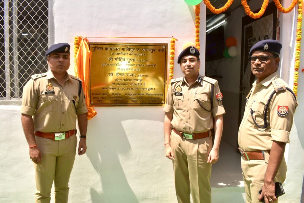 गाजीपुर। पुलिस महानिरीक्षक मोहित गुप्ता ने गुरुवार को पुलिस लाईन का वार्षिक निरीक्षण किया। इस दौरान उन्होंने निरीक्षण करने के साथ ही पुलिस लाइन में स्थित बारबर शॉप व जिम के जीर्णोद्धार का लोकार्पण और पुलिस ऑफिस स्थित जनसुनवाई कक्ष के जीर्णोद्वार का उद्घाटन किया। जनसुनवाई के दौरान फरियादियों की शिकायतों को सुनते हुए उसके निस्ताण का संबंधितों को निर्देश दिया। उन्होने निरीक्षण के दौरान पुलिस लाइन का भ्रमण कर विभिन्न शाखाओं/इकाईयों एम.टी. शाखा, आर्मरी, क्वार्टर गार्ड, पुलिस चिकित्सालय, भोजनालय, आर.ओ. प्लांट एवं बैरकों आदि का निरीक्षण कर व्यवस्थाओं को देखा। जहां भी किसी प्रकार की कमी मिले, उसे दुरुस्त कराने का निर्देश दिया। उन्होंने हाल ही में संपन्न हुई पुलिस भर्ती से संबंधित प्रशिक्षु आरक्षियों के आधारभूत प्रशिक्षण के लिए पुलिस लाइन में चल रही तैयारियों/निर्माण कार्यों का जायजा लिया।