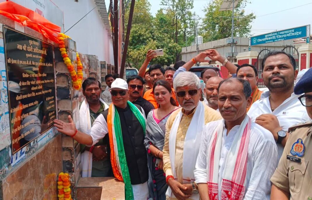 गाजीपुर। चिलचिलाती धुप और गर्मी में कचहरी एवं विभिन्न कार्यालयों में आने वाले लोगों तथा आस पास के लोगों को शीतल जल से प्यास बुझाने की व्यवस्था जिला पंचायत अध्यक्ष सपना सिंह के अनुरोध पर एचसीबीसी बैंक के सामाजिक दायित्व निधि से पुलिस अधीक्षक कार्यालय के द्वार पर वाटर कूलर लगाया गया। इस वाटर कूलर का लोकार्पण भाजपा जिलाध्यक्ष ओमप्रकाश राय किया ।इस अवसर पर जिला पंचायत अध्यक्ष सपना सिंह ने कहा कि यह वाटर कूलर अपने विभिन्न कार्यो से कचहरी आए जनपद वासियों, पुलिस अधीक्षक कार्यालय आए फरियादियों तथा यहां तैनात कर्मचारियों आदि के पीने के पानी की जरूरत को पूरा करेगा।इस अवसर पर पूर्व भाजपा जिलाध्यक्ष सुनील कुमार सिंह, जिला मंत्री विष्णु प्रताप सिंह, जिला मीडिया प्रभारी शशिकांत शर्मा, मनोज बिंद, राजीव चतुर्वेदी तथा क्षेत्राधिकारी सदर उपस्थित थे।