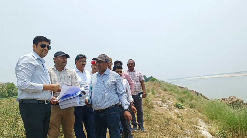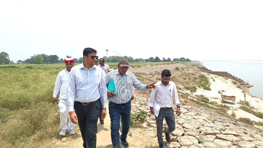 गाजीपुर। जिलाधिकारी अविनाश कुमार ने मंगलवार को संभावित बाढ एवं कटान को देखते हुए संचालित निर्माणाधीन परियोजनाओ का स्थलीय निरीक्षण किया। निरीक्षण के दौरान उन्होने विभिन्न स्थानों पर हो रहा कटानरोधक कार्यों का जायजा लेते हुए अधिकारियों को आवश्यक निर्देश दिये। जिलाधिकारी ने मुहम्मदाबाद तहसील के ग्राम शेरपुर जलालपुर, शेरपुर माघी और शेरपुर सुभाषपुर परिया (61) का स्थलीय निरीक्षण करने पहुंचे।