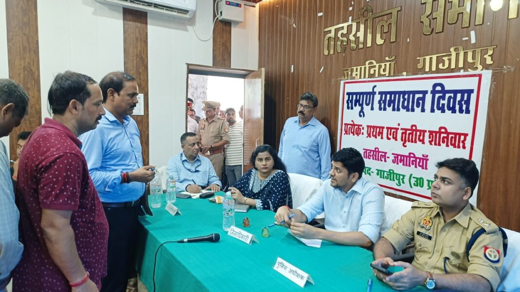 गाजीपुर। सम्पूर्ण समाधान दिवस तहसील जमानियां में जिलाधिकारी अविनाश कुमार एवं पुलिस अधीक्षक डा. ईरज राजा की उपस्थिति में हुआ। जिसमें 95 शिकायत प्राप्त हुए और मौके पर नौ का निस्तारण किया गया। सभी तहसीलो में सम्पूर्ण समाधान दिवस में कुल 438 शिकायत/प्रार्थना प्राप्त हुए जिसमें मौके पर 45 का निस्तारण किया गया। इसी क्रम में तहसील सैदपुर में अपर जिलाधिकारी वि0रा0 की अध्यक्षता 26 शिकायत प्राप्त हुए। जिसमें दो का निस्तारण किया। तहसील सेवराई में उपजिलाधिकारी की अध्यक्षता में 26 शिकायत प्राप्त हुए। जिसमें से चार का मौके पर निस्तारण किया गया। कासिमाबाद तहसील में उपजिलाधिकारी की अध्यक्षता में 107 शिकायत प्राप्त हुए। जिसमें पांच का निस्तारण किया गया। तहसील मुहमम्दाबाद में मुख्य राजस्व अधिकारी की अध्यक्षता में 32 प्रार्थना प्राप्त हुए। जिसमें मौके पर चार निस्तारण किया गया। तहसील जखनियां में उपजिलाधिकारी की अध्यक्षता में 108 शिकायत प्राप्त हुए। जिसमें से मौके पर 18 का निस्तारण किया गया एवं तहसील सदर में उपजिलाधिकारी की अध्यक्षता में 44 शिकायत प्राप्त हुए। जिसमें तीन का निस्तारण किया गया। जिलाधिकारी ने लोगों की शिकायतों को गंभीरतापूर्वक सुनते हुए कुछ शिकायतों का निस्तारण मौके पर ही कराया। इस अवसर पर पुलिस और राजस्व विभाग के अधिकारियों/कर्मचारियों को निर्देशित किया गया कि जमीनी विवाद और आपसी विवाद एक ही विषय से सम्बन्धित होते है इसलिए राजस्व विभाग एवं पुलिस विभाग के अधिकारी आपसी समन्वय स्थापित करते हुए विवादों का निस्तारण सुनिश्चित करें। उन्होने कहा कि जन शिकायतों का निस्तारण शासन की प्राथमिकता है अतः इसमें किसी भी तरह की लापरवाही या उदासीनता अक्षम्य होगी। इस अवसर पर जिला विकास अधिकारी सुभाष चन्द्र सरोज, उपजिलाधिकारी जमानियां, परियोजना निदेशक राजेश यादव,सीएमओ डा. सुनील पांडेय, तहसीलदर, क्षेत्राधिकारी एवं समस्त सम्बन्धित अधिकारी एवं पुलिस के अधिकारी उपस्थित रहे।