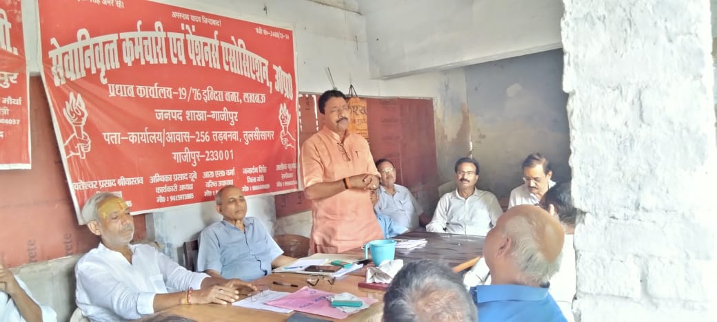 गाजीपुर। सेवानिवृत कर्मचारी एवं पेंशनर्स ऐशोसिएशन के कार्यकारिणी की बैठक कलेक्ट्रेट परिसर के पेंशनर्स भवन में जिलाध्यक्ष मुक्तेश्वर श्रीवास्तव की अध्यक्षता में हुई। जिसमें सात सूत्रीय मांगों के समर्थन में प्रदेश व्यापी आन्दोलन क्रम में 15 जुलाई को सरजू पाण्डेय पार्क में धरना प्रदर्शन कर सात सूत्रीय मांगों का ज्ञापन जिलाधिकारी के माध्यम से प्रधानमंत्री एवं मुख्यमंत्री को भेजा जाएगा। मुक्तेश्वर श्रीवास्तव ने कहा कि भारत सरकार द्वारा आठवें वेतन आयोग की घोषणा तो कर दी गई किन्तु आज तक आयोग के अध्यक्ष एवं सदस्यों को नामित नहीं किया गया जो सरकार की नीति और नियति पर प्रश्नचिन्ह खड़ा करता है,कार्यकारी अध्यक्ष अम्बिका दूबे ने समस्त सेवा निवृत/सेवा रत कर्मचारी शिक्षक एवं अधिकारी संगठनों से 15 जुलाई को आन्दोलन को सफल बनाने की अपील की।जिला मंत्री जनार्दन सिंह ने सदस्यता अभियान युद्ध स्तर पर शुरू करने की अपील की, कोषाध्यक्ष अशोक कुमार ने बैठक में आय व्यय का विवरण प्रस्तुत किया, संप्रेक्षक बाल कृष्ण यादव ने आंदोलन में सबको उपस्थित होने की अपील की।बैठक में बरमेश्वर उपाध्याय,अमरनाथ तिवारी अमर, डीएन राय, डा सुग्रीव सिंह,उग्रसेन सिंह अनूप सिन्हा, इं सुरेन्द्र प्रताप,जीयुत शर्मा, अक्षयवर राय, जगदीश गुप्ता, लल्लन राम,उमेश श्रीवास्तव, शिव कुमार ,श्री प्रकाश द्विवेदी, रामू यादव,गोपाल खरवार,चन्द्रिका कुशवाहा रहे।अध्यक्षता मुक्तेश्वर श्रीवास्तव एवं संचालन जनार्दन सिंह एवं अम्बिका दुबे ने किया।
