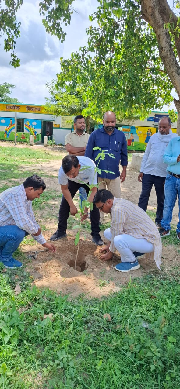 रेवतीपुर (गाजीपुर)। ब्लाक के परिषदीय स्कूलों में गुरूवार से शासन के निर्देश पर हरीतिमा योजना के तहत छात्र- छात्राओं के द्वारा एक पेड मां के नाम का शुभारंभ बीईओ अशोक कुमार गौतम ने पौधरोपण कर किया।हरीतिमा योजना के तहत 104 विद्यालयों में छात्र- छात्राओ ने फलदार, छायादार,औषधि के पौधे जिनमें जामुन,चितचोर,नीम,महोगनी, अशोक,शीशम, सागौन,तुलसी आदि प्रजाति के दो हजार से अधिक पौधे लगाए ।साथ इन पौधों के लगाने का फोटो हरीतिमा पोर्टल पर जीयो टैग कर अपलोड भी किया गया।इस दौरान सभी छात्र छात्राओं ने विद्यालयों और आसपास के इलाके को हरा भरा एवं स्वच्छ बनाने को संरक्षित करने के लिए शपथ लेते हुए अन्य लोगो से भी पौधरोपण को लेकर गंम्भीरता दिखाने का आह्वान किया। इस दौरान पौधे लगाने वाले छात्रों को डिजिटल प्रमाण पत्र भी दिया गया।बीईओ ने कहा कि पौधे लगाने के साथ ही अब विद्यालय में पढने वाले छात्र पढने के साथ ही फलदार और औषधीय पौधों का लाभ उठा सकते है,कहा कि पौधे हमारे जीवन के अभिन्न हिस्सा है,इसके जरिए ही हमें स्वच्छ आक्सीजन मिलता है,जो वातावरण को हरा भरा बनाए रखने में मदद करता है।उन्होंने कहा कि हरीतिमा पोर्टल पर पौधो को लगाते समय उनकी जीयो टैगिंग कर फोटो अपलोड भी करना है,ताकि इसके जरिए जिन लोगों ने पौधे लगाए उन्हें डिजिटल प्रमाण- पत्र उपलब्ध कराया जा सके। बीईओ अशोक कुमार गौतम ने कहा कि जितने भी पौधे लगाए गये है उनका हर हफ्ते भौतिक सत्यापन होगा कि पौधे सुरक्षित है या नहीं।इस अवसर पर संत कुमार गुप्ता,ग्राम प्रधान सुधीर सिंह,सत्यप्रकाश श्रीवास्तव, डेजी शर्मा,भगवती प्रसाद तिवारी, चंद्रशेखर त्रिपाठी, मंगल दीप, शिवचंद चौहान,धर्मेंद्र सिंह,अरशद हसन,धर्मेंद्र कन्नौजिया आदि मौजूद रहे।