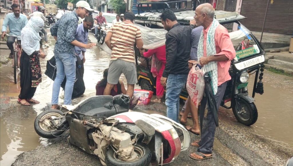 गाजीपुर। शहर की सड़कें अब मौत का जाल बनती जा रही हैं। “गड्ढा मुक्त अभियान” के सरकारी दावे खोखले साबित हो रहे हैं। आज, लंका-कचहरी मार्ग पर जानलेवा गड्ढों के कारण एक के बाद एक पाँच टेम्पो पलट गए, जिसमें एक बच्चा घायल हो गया और एक महिला गंभीर रूप से चोटिल हो गई।घटना के बाद छात्र नेता दीपक उपाध्याय मौके पर पहुंचे। उन्होंने घायल महिला को तत्काल सदर अस्पताल में भर्ती कराया, जहाँ उसका प्राथमिक इलाज चल रहा है। इस घटना से स्थानीय लोगों में भारी आक्रोश है। छात्र नेता दीपक उपाध्याय के नेतृत्व में सैकड़ों नागरिकों ने लंका-कचहरी मार्ग की बदहाल स्थिति पर जबरदस्त विरोध प्रदर्शन किया।