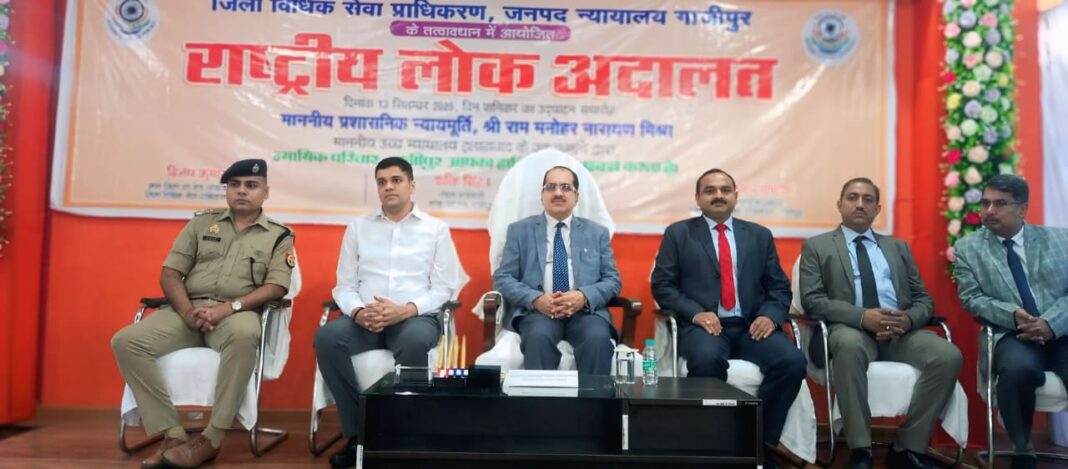 इस अवसर पर नोडल अधिकारी, राष्ट्रीय लोक अदालत शक्ति सिंह अपर जिला जज कोर्ट संख्या-1 ने लोक अदालत के विषय में जानकारी देते हुए बताया कि ऐसे छोटे प्रकरण जिसमें अनावश्यक रुप से मुकदमेबाजी के कारण पक्षकारों के मध्य वैमनस्यता विद्यमान रहती है, को समाप्त कर सौहार्दपूर्ण वातावरण बनाने में लोक अदालत द्वारा अपनी सक्रिय भूमिका निभायी जा रही है। आज की राष्ट्रीय लोक अदालत में वृद्धा, दिव्यांग एवं विधवा पेंशन हेतु एक शिविर भी लगाया गया। इस अवसर पर मेडिकल कैम्प का भी आयोजन किया गया। जिसमें विभिन्न रोगों के विशेषज्ञ डाक्टर मौजूद रहे। इसके अतिरिक्त राष्ट्रीय लोक अदालत के अवसर पर बिजली बिल, गृहकर एवं जल कर सहित अन्य सामाजिक योजनाओं से सम्बंधित पाण्डाल भी लगाये गये हैं। प्रशासनिक न्यायमूर्ति ने कुछ दिव्यांगजनों को व्हील चेयर/ बैसाखी आदि का वितरण भी किया । विजय कुमार-प्ट, अपर जिला एवं सत्र न्यायाधीश/सचिव पूर्णकालिक जिला विधिक सेवा प्राधिकरण,ने बताया कि इस राष्ट्रीय लोक अदालत में कुल एक लाख 33 हजार 502 मामले निस्तारण हेतु नियत किये गये थे, जिसमें से सुलह समझौते एवं संस्वीकृति के आधार पर कुल एक लाख 22 हजार 952 बाद अंतिम रूप से निस्तारित किये गये। राजस्व विभाग के मामले, विभिन्न न्यायालयों द्वारा 14 हजार 122 नामले तथा बैंक एवं अन्य विभाग द्वारा कुल एक लाख 8 हजार 830 मामले निस्तारित किये गये। परिवार न्यायालय द्वारा कुल 13 विवाहित जोड़ो की सुलह कराकर विदाई करायी गयी। इस अवसर पर प्रधान न्यायाधीश परिवार न्यायालय रूपेश रंजन, पी.ओ. एम.ए.सी.टी. संजय हरिशुक्का, जिलाधिकारी अविनाश कुमार, पुलिस अधीक्षक डा० ईरज राजा व मुख्य न्यायिक मजिस्ट्रेट नूतन द्विवेदी सहित समस्त न्यायिक अधिकारीगण, सिविल बार के अध्यक्ष रामयश यादव, सचिव ज्योत्सना श्रीवास्तव, वाह्य न्यायालय सैदपुर, मुहम्मदाबाद, ग्राम न्यायालय जखनियां, जमानियां, बार के पदाधिकारीगण, न्यायालय के कर्मचारीगण एवं वादकारी उपस्थित रहे।
