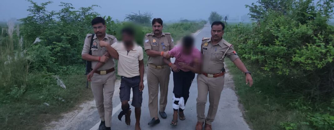 गाजीपुर।थाना जंगीपुर एवं बिरनो पुलिस ने 14 सितंबर को भवरहा मोड के पास मुठभेड़ में दो गौ- तस्कर गोली लगने से घायल हो गये। दोनों को उपचार के लिए स्वास्थ्य केंद्र पर ले जाया गया। उनके कब्जे से दो तमंचा, दो कारतूस का खोखा , दो कारतूस तथा पिकअप पर लदा चार गौ- वंश बरामद किया है। पुलिस अधीक्षक डा. ईरज राजा के निर्देशन में अपराधियों के खिलाफ चलाये जा रहे अभियान के तहत बिरनो थानाध्यक्ष पुलिस टीम के साथ रात में नसरतपुर में वाहन चेकिंग कर रहे थे। इसी बीच तेज रफ्तार एक पिकअप मरदह से जंगीपुर की तरफ आ रही थी । पुलिस ने उसे रोकने का प्रयास किया तो पिकअप सवार तेजी से भागने लगे । पुलिस उसका पीछा करते हुए बिरनो थानाध्यक्ष बालेंदु कुमार ने जंगीपुर थानाध्यक्ष विवेक तिवारी को सूचना दी कि एक पिकअप तेजी से भाग रही है। दोनों थाने की पुलिस पिकअप सवारों को घेरने लगी। भवरहां मोड के पास खुद को घिरा देख पिकअप सवार बदमाशों ने पुलिस टीम पर गोली चलाने लगे। पुलिस ने भी अपने को बचाते हुए फायरिंग की। गोली दोनों बदमाशों के पैर में लगी। दोनों घायल हो गये।। पुलिस ने दोनों बदमाशों को गिरफ्तार कर उपचार के लिए सीएचसी बिरनो भेजा। जबकि अंधेरे का फायदा उठाकर एक बदमाश फरार हो गया।। पुलिस के पूछताछ में दोनों ने अपना नाम करीमुद्दीनपुर गांव निवासी संतोष राजभर तथा दुल्लहपुर थाना के जमसड़ा निवासी सोनू यादव बताये। पुलिस का कहना है कि पकड़े गये दोनों गौ-तस्कर पर सोलह मुकदमें दर्ज है।