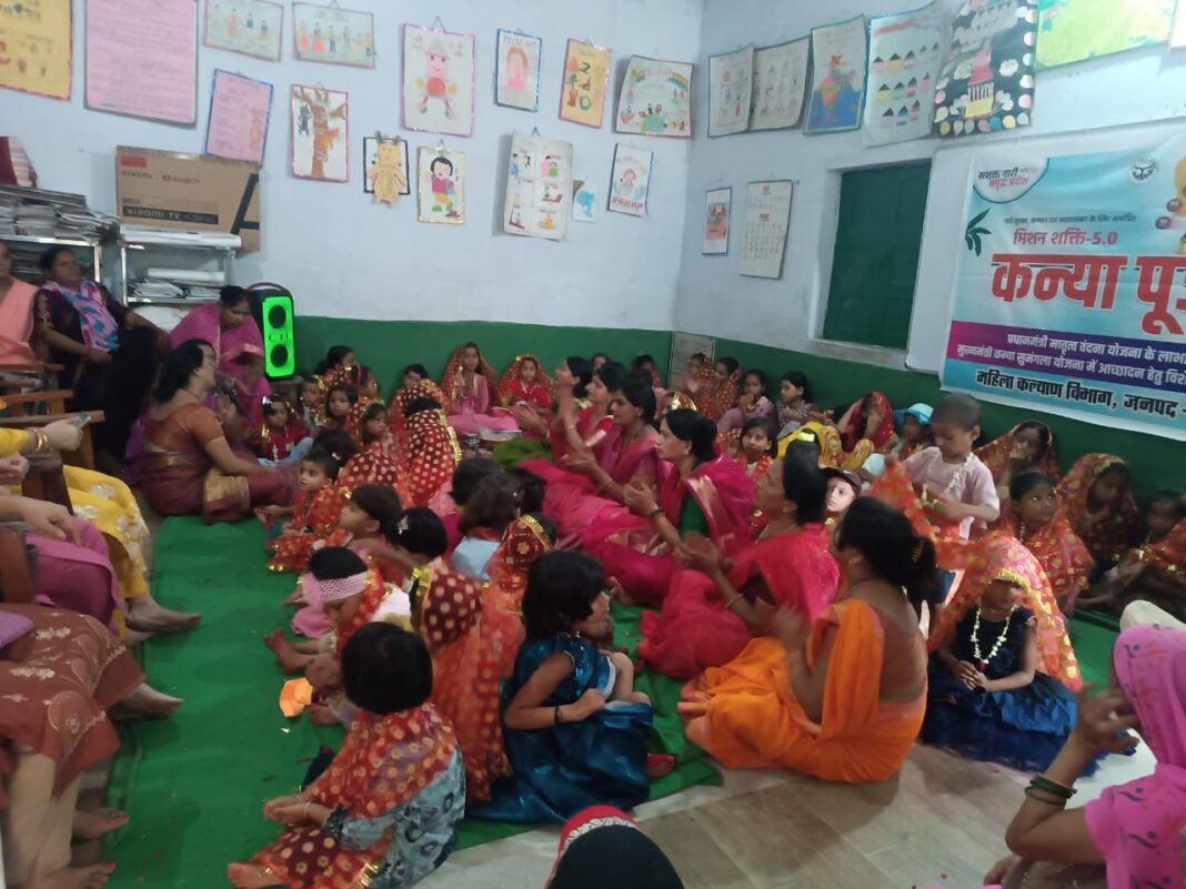 गाज़ीपुर। शारदीय नवरात्रि अष्टमी पर मिशन शक्ति 5.0 के तहत नगर संसाधन केंद्र में कन्या पूजन का आयोजन किया गया। इस अवसर पर कुल 51 बालिकाओं का पूजन एवं सम्मान किया गया। कार्यक्रम के दौरान बालिकाओं के चरण पूजन, तिलक, पुष्पार्चन एवं उन्हें फल-उपहार प्रदान किए गए। इस आयोजन का उद्देश्य “बेटी बचाओ, बेटी पढ़ाओ” तथा नारी सम्मान के संदेश को समाज में व्यापक स्तर पर पहुंचाना है। सरकार की मन्सा के साथ यह कार्यक्रम लगातार मिशन शक्ति के साथ किया जा रहा है। मिशन शक्ति 5.0 के अंतर्गत आयोजित इस कार्यक्रम में बालिकाओं की पूजा कर उन्हें समाज में देवी स्वरूप मानने की परंपरा को आगे बढ़ाने का संदेश दिया गया। साथ ही उपस्थित जनों को महिलाओं एवं बालिकाओं की सुरक्षा, शिक्षा तथा आत्मनिर्भरता के प्रति जागरूक किया गया। इस अवसर पर अधिकारियों, शिक्षकों एवं अभिभावकों ने कहा कि “नारी ही शक्ति का स्रोत है, और बालिकाओं के सम्मान एवं सशक्तिकरण के बिना समाज की प्रगति संभव नहीं है। कार्यक्रम में जिला प्रोबेशन अधिकारी, सीडीपीओ सदर, विद्यालय की अध्यापिका उपस्थित थीं।