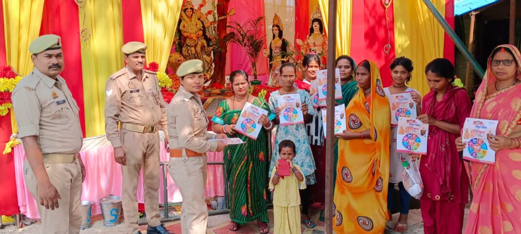 गाजीपुर। महिला सशक्तिकरण के लिए चलाये जा रहे मिशन शक्ति” अभियान फेज-05 के तहत पहली अक्टूबर को विभिन्न थाना क्षेत्र में दुर्गा मंदिर व पंडालों में आने वाली महिलाओं के लिए सुरक्षा और जागरूकता अभियान चलाया गया। सभी महिलाओं को पम्पलेट वितरित किया गया। महिला पुलिस कर्मी पंडालों में जाकर उपस्थित महिलाओं से संवाद स्थापित कर सभी को मिशन शक्ति अभियान के बारे में जागरूक किया। मिशन शक्ति अभियान को सार्थक बनाने के लिए विभिन्न थाना क्षेत्रों में मुख्य बाजारों, संवेदनशील स्थानों एवं भीड़ वाली जगहों पर जाकर पुलिस बल पैदल गश्त कर मिशन शक्ति का अभियान चलाकर लोगों को जागरूक किया । थाना क्षेत्रों में स्थापित मिशन शक्ति केन्द्र में आई विभिन्न वर्गों की महिला जन प्रतिनिधिओं से संवाद/मीटिंग कर सभी महिलाओं, बालिकाओं को जागरूक करने के लिए प्रेरित किया गया। पुलिस प्रशासन की एंटी रोमियो टीम संवेदनशील क्षेत्रों में भ्रमण कर शोहदों के विरुद्ध कार्रवाई की गई । सभी थाना क्षेत्रों मे वाहन चेकिंग अभियान चलाया गया। अभियान में वाहनो पर लगे हूटर, काली फिल्म, लाल नीली बत्ती, नंबर प्लेट पर शासकीय या जाति या धर्म को इंगित करने वाले शब्द/प्रतीक चिन्ह अंकित करने वालों, स्टंट करने वालों के विरुद्ध कार्रवाई की गई । इस अभियान के तहत रेलवे स्टेशन पर जीआरपी और आरपीएफ बल की मदद से मिशन शक्ति जागरूकता अभियान चलाया गया।