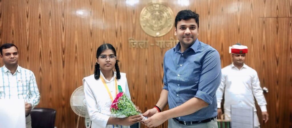 गाजीपुर । महिला सशक्तिकरण एवं बालिकाओं में नेतृत्व क्षमता के विकास के लिए चलाए जा रहे “मिशन शक्ति फेज 5.0” अभियान के तहत “एक दिन की जिलाधिकारी” कार्यक्रम का आयोजन किया गया। इस अवसर पर राजकीय बालिका इंटर कॉलेज महुआबाग की कक्षा 12 की छात्रा प्राची कश्यप को “एक दिन का जिलाधिकारी” के रूप में मनोनीत किया गया। छात्रा प्राची कश्यप ने गुरुवार को कलेक्ट्रेट सभागार में आयोजित जनता दर्शन में जनसुनवाई करते हुए विभिन्न लोगों की समस्याओं को सुना। इसके बाद संबंधित विभागों को निस्तारण के लिए आवश्यक दिशा-निर्देश दिये। कार्यक्रम का उद्देश्य बालिकाओं में नेतृत्व, आत्मविश्वास और प्रशासनिक समझ विकसित करना था, जिससे वे भविष्य में समाज सेवा और शासन-प्रशासन के कार्यों में सक्रिय भूमिका निभा सकें।