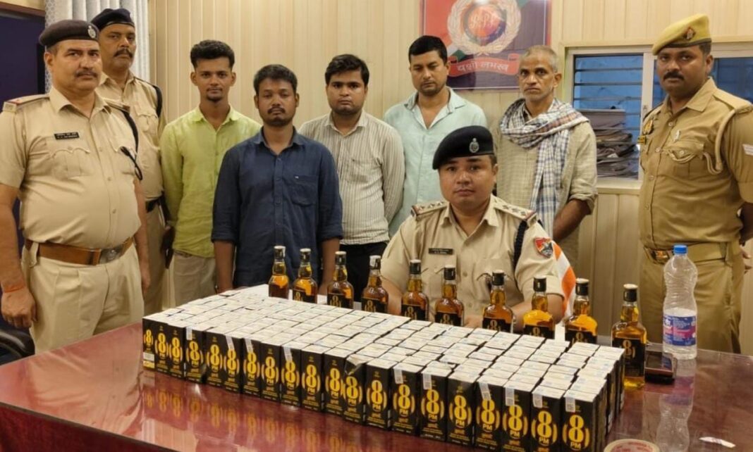 दिलदारनगर (गाजीपुर)। बिहार चुनाव से पहले ही आरपीएफ ने पटना कोटा व सीमांचल एक्सप्रेस ट्रेन से गुरुवार को पांच शराब तस्करों को 32.190 लीटर अंग्रेजी शराब के साथ पकड़ा। आरपीएफ निरीक्षक गणेश सिंह राणा ने बताया कि ऑपरेशन सतर्क के तहत गुरुवार को आरपीएफ टीम व दिलदारनगर जीआरपी संग चेकिंग अभियान में बिहार में चुनाव के मद्देनजर अधिकारीयों के निर्देश पर शराब माफियाओं की धर-पकड़ हेतु अभियान चलाया गया।डीडीयू जंक्शन से 13240 कोटा-पटना एक्स के खुलने के 15 मिनट बाद साधारण बोगी को चेक कर रहे थे।रेलवे स्टेशन कुछमन एवं धीना के बीच तीन व्यक्तियों को पिट्ठू बैग में अंग्रेजी शराब साथ के पकड़ा । जमानियां स्टेशन के प्लेट फार्म एक पर ट्रेन रुकने के उपरांत जमानियां में कैम्पिंग ड्यूटी स्टाफ तथा प्रधान आरक्षी प्रीतम कुमार व जीआरपी के सहयोग से तीनों शराब तस्करों को गाड़ी से उतार कर विधिक कार्रवाई किया गया। दिलदारनगर स्टेशन पर गाड़ी संख्या 12488 डाउन को संयुक्त रूप से चेक करने पर और दो और तस्करों को शराब के साथ पकड़ा । गिरफ्तार शराब तस्करों में संदीप कुमार, टुन्नू कुमार, कुंदन कुमार, विवेक कुमार तथा रवीश कुमार शामिल हैं। ये सभी तस्कर बिहार के रहने वाले हैं।
