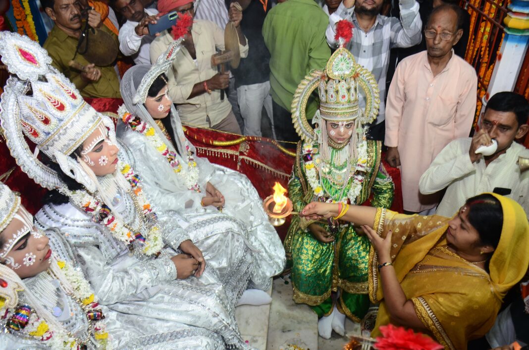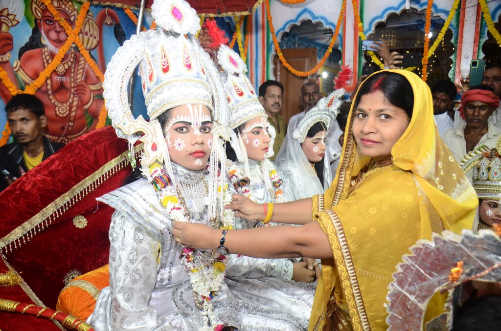 गाजीपुर। अति प्राचीन रामलीला कमेटी के रामलीला मंचन का समापन हरिशंकरी स्थित प्राचीन राम चबूतरे पर हुआ। 11 अक्टूबर को श्री राम राज्याभिषेक का कार्यक्रम विधि विधान एवं वेद मंत्रोच्चार के साथ किया गया। मुख्य अतिथि राज्यसभा सांसद डॉ० संगीता बलवंत और विशिष्ट अतिथि भाजपा नेता कृष्णबिहारी राय रहे। लंका पर विजय की प्राप्ति के बाद हरिशंकरी के प्राचीन चबूतरे पर श्रीराम राज्याभिषेक का भव्य आयोजन किया गया। राजा राम और माता जानकी सहित भरत, लक्ष्मण, शत्रुघ्न और हनुमानजी विराजमान हुए। भक्तों ने उनकी पूजा की और आशीर्वाद प्राप्त किया।इस मौके पर गाजीपुर में नवरात्रि पर सजे सुंदर दुर्गा पंडालों को और कार्यक्रम के सहयोगियों को रामलीला कमेटी की ओर से प्रशस्ति पत्र दिया गया। राज्यसभा सांसद डॉ संगीता बलवंत ने कहा कि भगवान राम की कथा हमें सत्य, न्याय और धर्म के मार्ग पर चलने का संदेश देती है। रामायण के पात्रों से हमें जीवन जीने का सही तरीका सीखने को मिलता है। जिस तरह से अति प्राचीन रामलीला कमेटी “हरिशंकरी” चार सौ साल से परंपरागत ढंग से रामलीला मंचन किया जाता है ये पूरे शहर में एक उत्सव की तरह आयोजन होता है, लोग अपनी संस्कृति और परंपराओं से जुड़ते हैं जो बहुत ही सराहनीय है।