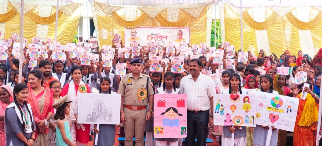 गाजीपुर। मिशन शक्ति फेज 5.0 अभियान में पुलिस एवं विशाल भारत संस्थान की ओर से मौनीदास इण्टर कालेज कुण्डीपुर सराय शरीफ में कार्यक्रम का आयोजन किया गया । मुख्य अतिथि पुलिस अधीक्षक डा. ईरज राजा ने माँ सरस्वती के चित्र पर पुष्प अर्पित करते हुए दीप प्रज्ज्वलित कर कार्यक्रम का शुभारम्भ किया । पुलिस अधीक्षक कालेज परिसर में पौधरोपण कर प्रतिभावान छात्राओं को मेडल प्रदान किया। इसके बाद कॉलेज की छात्राओं ने नुक्कड़ नाटक के माध्यम से उपस्थित महिलाओं, बच्चियों को हेल्पलाइन नम्बरों (1090, 181, 112, 1930, 1076, 102, 101, 108, 1098) की जानकारी प्रदान की। विशाल भारत संस्थान ने मिशन थाना नंदगंज स्थित शक्ति केन्द्र की महिला पुलिस कर्मियों को सम्मानित किया । इस अवसर पर कॉलेज के छात्र-छात्राएं एवं उनके परिवार के सदस्य तथा आसपास के क्षेत्र की महिलाएं मौजूद रही ।