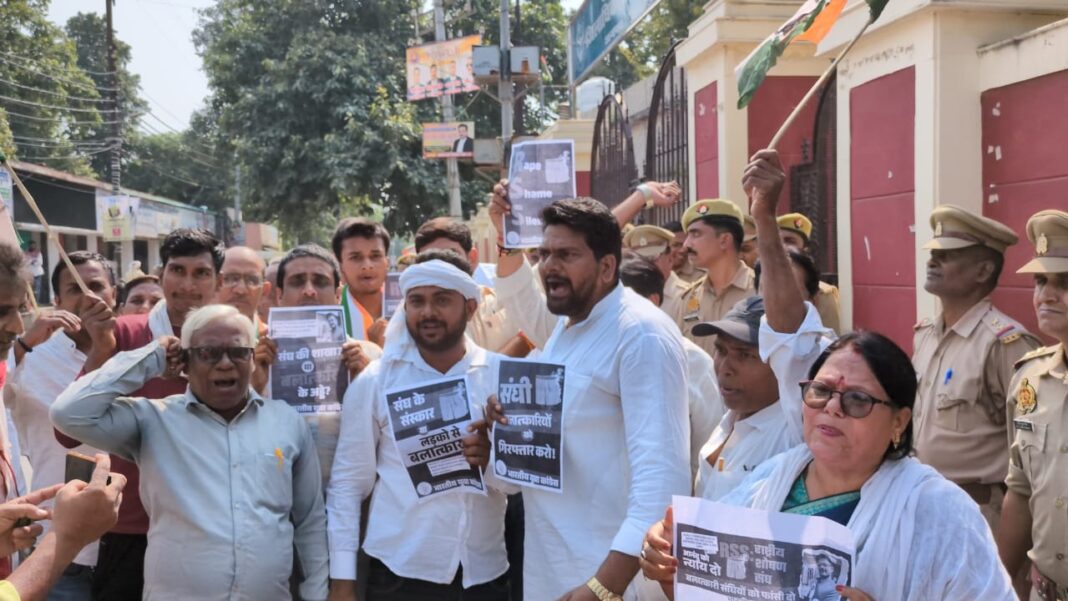 गाजीपुर। कांग्रेस पार्टी के कार्यकर्ताओं ने गुरुवार को सरजू पांडेय पार्क में आरएसएस के खिलाफ नारेबाजी करते हुए विरोध प्रदर्शन किया। उन्होने राष्ट्रपति को संबोधित एक ज्ञापन जिलाधिकारी के माध्यम से भेजा है। कांग्रेस नेताओं ने बताया कि केरल के सॉफ्टवेयर इंजीनियर आनंदू अजी के साथ आरएसएस नेता यौन उत्पीड़न जैसा अमानवीय कृत्य इस कदर किया कि उसने परेशान होकर आत्महत्या कर ली। वहीं भाजपा के राज्यसभा सांसद बृजलाल ने यह कहा कि खरवार और गोंड़ जातियां सिर्फ सोनभद्र, मिर्जापुर और चंदौली के नौगढ़ क्षेत्र में ही मिलते हैं ये सरासर गलत है। इन मुद्दों के साथ कांग्रेस पार्टी ने भाजपा की नीतियों के खिलाफ धरना प्रदर्शन कर आरोपी आरएसएस नेताओं और जिम्मेदार पदाधिकारियों के खिलाफ जांच कर कानूनी कार्यवाही की मांग की।नगर अध्यक्ष संदीप विश्वकर्मा ने कहा कि ये घिनौना कृत्य आरएसएस की कथनी और करनी में अंतर को साफ बयान करता है। उन्होंने राज्यसभा सांसद के जाति विशेष के बारे में दी गई सूचनाओं को भ्रामक और मनगढ़ंत बताते हुए विरोध प्रकट किया। यूथ कांग्रेस के जिलाध्यक्ष धर्मेंद्र कुमार ने कहा कि संघ का कैसा संस्कार है जो लड़कों का यौन उत्पीड़न कर रहा है,। इसपर सख्त कानूनी कार्रवाई होनी चाहिए। विरोध प्रदर्शन में आदिवासी कांग्रेस के प्रदेश अध्यक्ष डॉ उमेश चंद्र ने कहा कि उन्हें इस समाज से माफी मांगने चाहिए क्योंकि ये समाज प्रदेश के कई जनपदों में है और उसका प्रमाणपत्र भी बना हुआ है, उन्हें अपने इस कथन के लिए समाज से माफी मांग कर इस्तीफा दे देना चाहिए। विरोध प्रदर्शन में पत्रक देने के बाद पुलिस ने शहर अध्यक्ष संदीप विश्वकर्मा, जिला महासचिव सतीश उपाध्याय, सेवादल जिलाध्यक्ष आशुतोष गुप्ता, यूथ कांग्रेस जिलाध्यक्ष धर्मेंद्र कुमार और पीसीसी सदस्य सुमन चौबे को हिरासत में लिया । प्रदर्शन में रविकांत राय,सतीश उपाध्याय, सुमन चौबे, आशुतोष गुप्ता, जनक कुशवाहा, कुंदन खरवार, अरुण कुमार वर्मा, हामिद अली ,श्याम नारायण सिंह कुशवाहा, मोहम्मद राशिद, विनोद सिंह ,डॉ ब्रह्मदेव खरवार, दिनेश खरवार, राम रतन खरवार, मारकंडे खरवार, अजय चंद चौबे, धर्मेंद्र कुमार, अखिलेश यादव, शशि भूषण राय तथा अरविंद कुशवाहा आदि लोग रहे।
