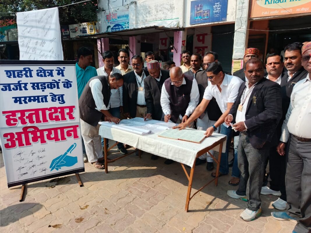 गाजीपुर। नगर क्षेत्र की खस्ताहाल सड़कों की मरम्मत कराने के लिए विवेक सिंह शम्मी कई विभागों के खिलाफ मोर्चा खोल दिये है। हस्ताक्षर अभियान के दुसरे दिन कचहरी रोड पर गड्ढा मुक्त करने के मुहिम को लेकर करीब 1600 लोगों ने हस्ताक्षर करके अपना समर्थन दिया। इस अभियान में अधिवक्ताओं ने भी हस्ताक्षर करके इस आंदोलेन को पूर्ण समर्थन दिया। वरिष्ठ अधिवक्ता सुरेश चंद्र श्रीवास्तव ने कहा कि नगर की सड़कों की ऐसी बदहाल स्थिति पहले कभी नहीं थी। सीवर का काम खत्म हुए एक वर्ष से ऊपर हो गये, फिर भी एक भी रोड का पूरी तरीके से निर्माण नहीं हो पाया है। उन्होने कहा कि मुकदमे के सिलसिले में ग्रामीण क्षेत्रों से आए हुए वादी व प्रतिवादी शहर क्षेत्र में घुसते ही शासन व प्रशासन को कोसने लगते हैं। इससे बड़ा दुर्भाग्य शहर का नहीं हो सकता है कि ग्रामीण क्षेत्र से आए लोग जिला मुख्यालय पर आकर यह कहने लगे कि शहर से अच्छी तो गांव की सड़कें हैं। हस्ताक्षर अभियान के आयोजक विवेक कुमार सिंह ‘शम्मी’ ने कहा कि दस हजार हस्ताक्षर होने तक यह अभियान चलता रहेगा। नगर के विभिन्न क्षेत्रों में जाकर हस्ताक्षर कराते रहेंगे। साथ ही आम लोगों को अपने अधिकार के प्रति जागरूक भी करेंगे। इस मौके पर एडवोकेट सुरेश चंद श्रीवास्तव, एडवोकेट बृजेश राय, एडवोकेट रणजीत सिंह, एडवोकेट राजेश राम, एडवोकेट वीरेश सिंह, आदि दर्जनों वकीलों के साथ ही चंद्रिका यादव आदि स्थानीय नागरिकों ने हस्ताक्षर अभियान का समर्थन किया।